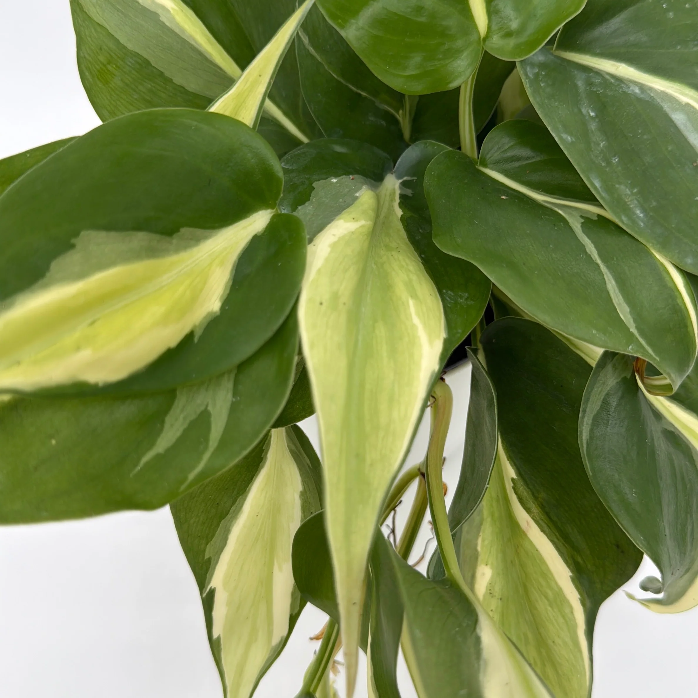 Soft, elegant, and beautifully variegated ā the Philodendron āRioā is a sought-after trailing hybrid loved for its painterly mix of yellow and deep green. Each elongated leaf features a silvery-green center framed by darker margins and subtle cream accents, giving it a refined, almost marbled appearance that feels light and sophisticated.