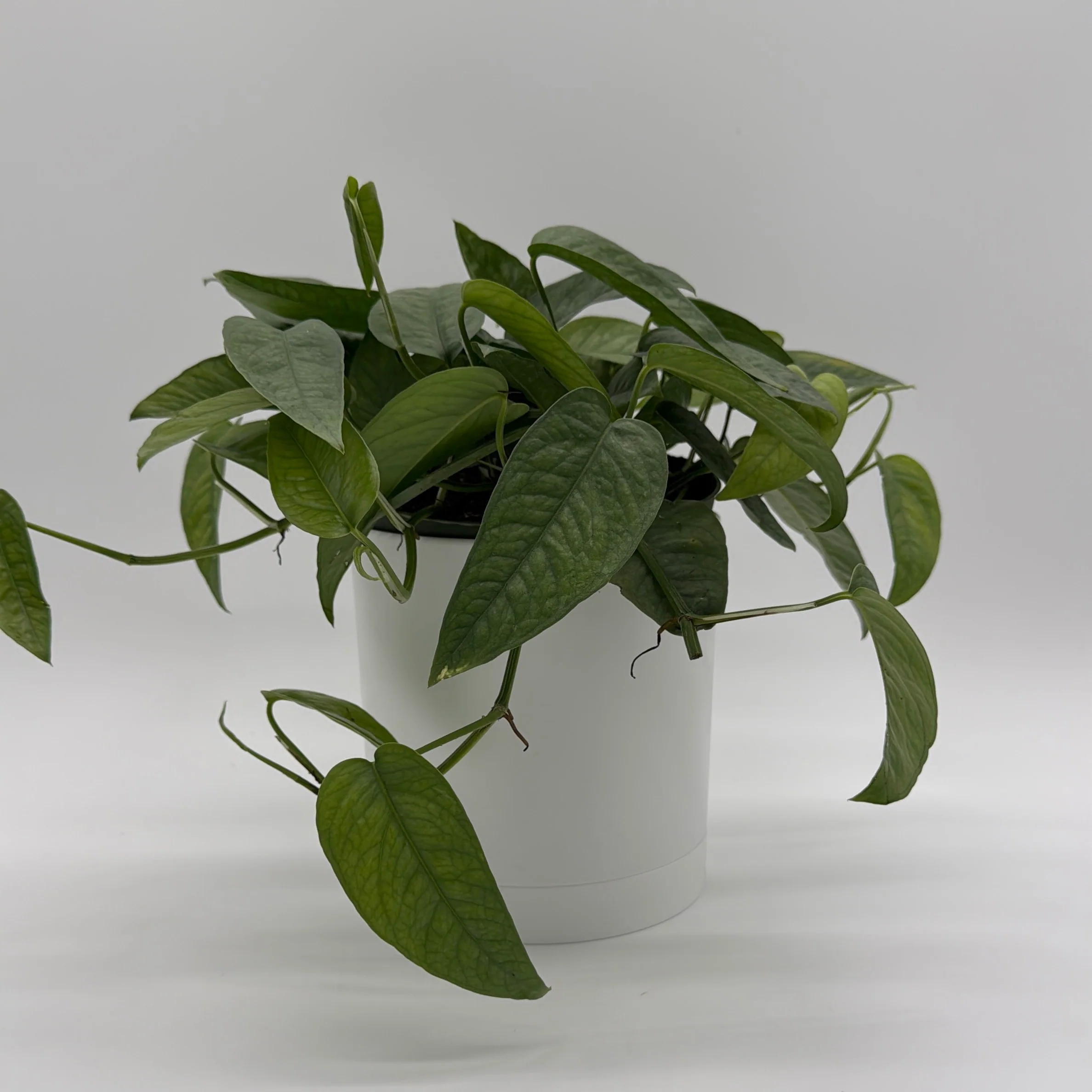 The Pothos Cebu Blue (Epipremnum) is a fast-growing tropical houseplant admired for its slender, silvery-blue leaves that shimmer with a metallic sheen. Whether displayed as a trailing vine in a hanging basket or trained to climb a moss pole, this plant adds an elegant and modern touch to any indoor collection. Its unique foliage makes it a standout among pothos varieties.