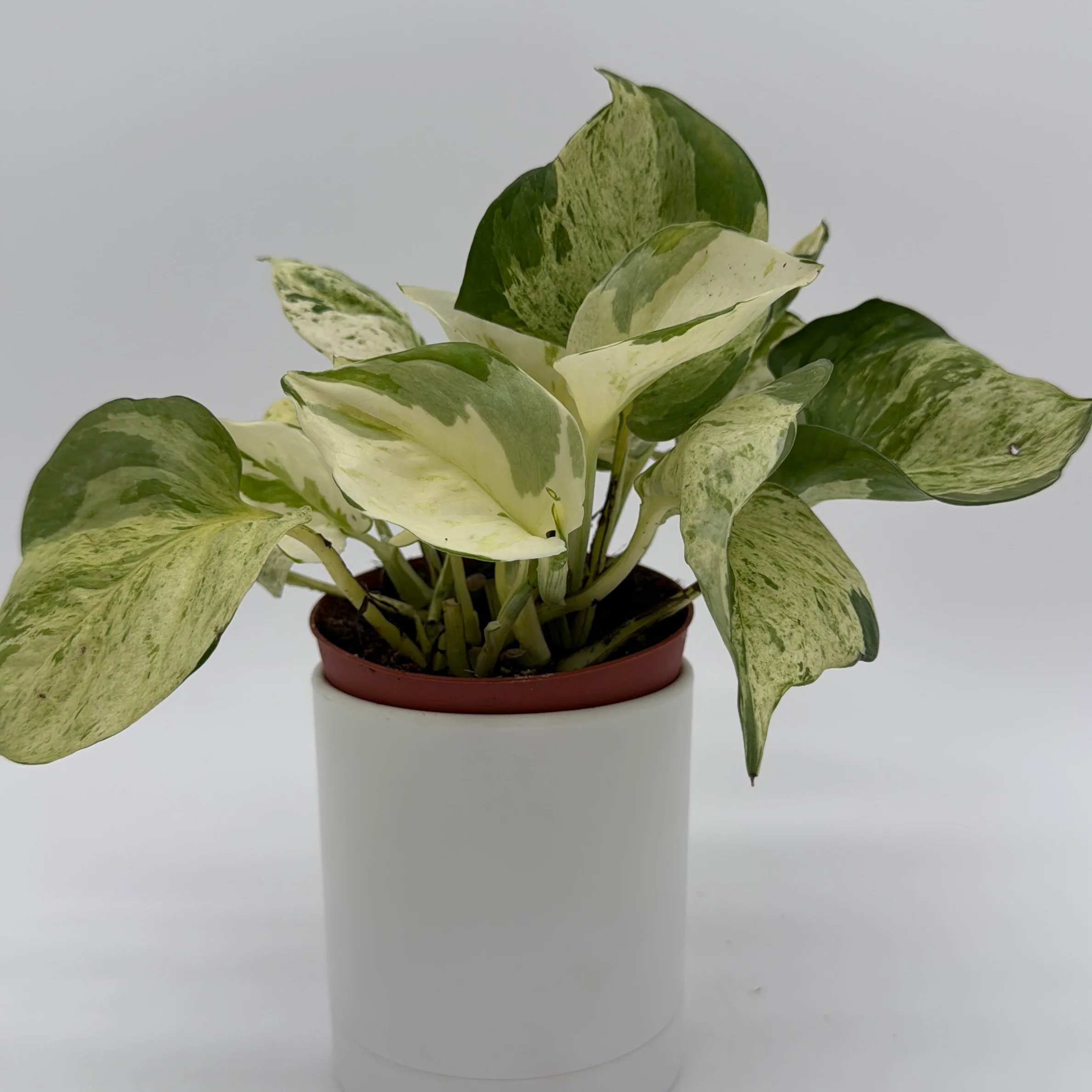 Soft, swirled, and beautifully variegated ā the Pothos āManjulaā is a patented variety loved for its creamy-white, silver, and green marbling that looks hand-painted across every leaf. No two leaves are ever the same, giving this plant a uniquely artistic look that stands out in any collection.
