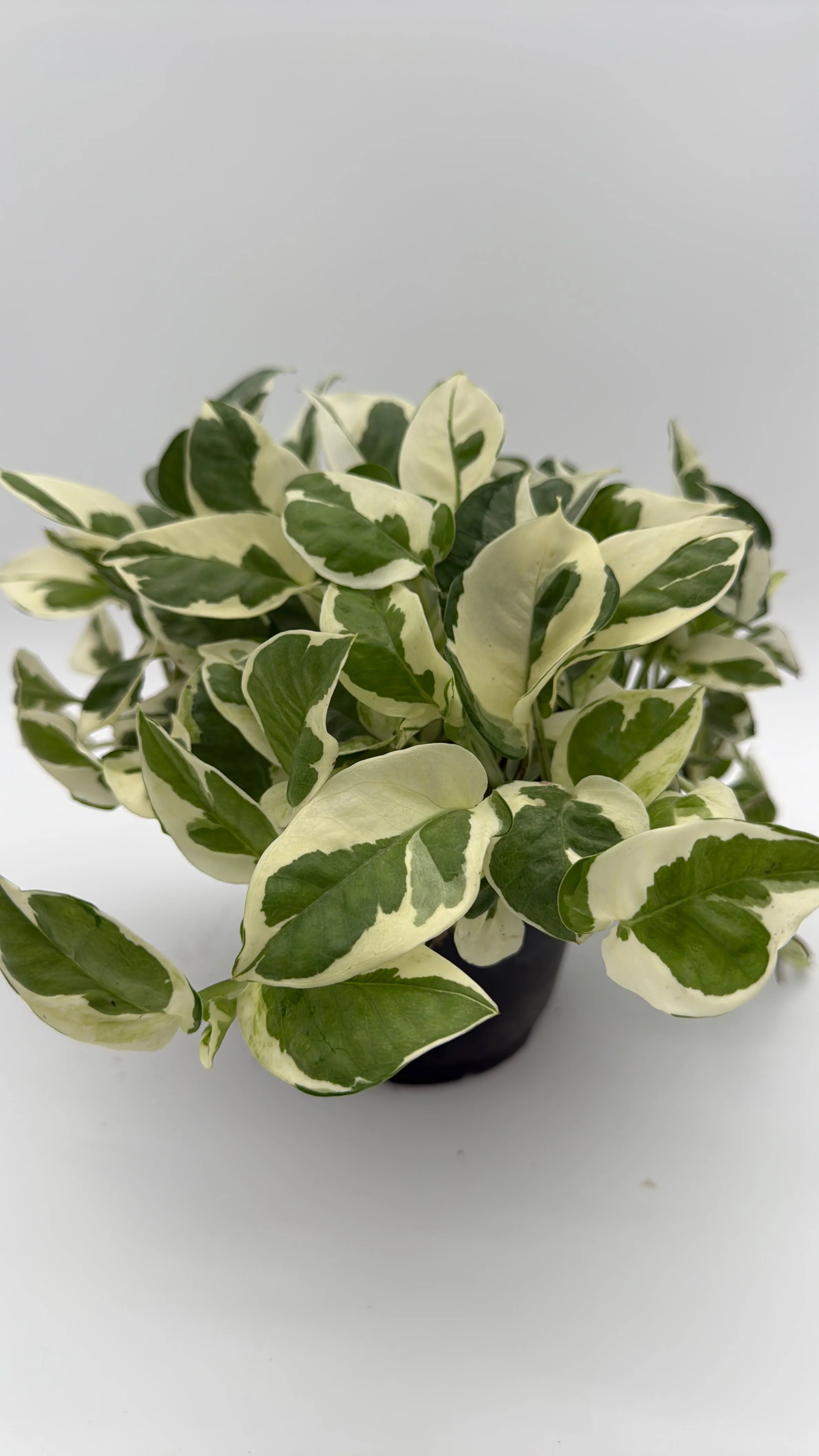 Elevate your indoor jungle with theĀ Pearls and Jade Pothos, a stunning vining plant celebrated for its petite, heart-shaped leaves adorned with marbled shades of green, white, and gray. Its unique variegation often features delicate āfrecklesā of green within the creamy white, giving it a one-of-a-kind look that stands out in any home.